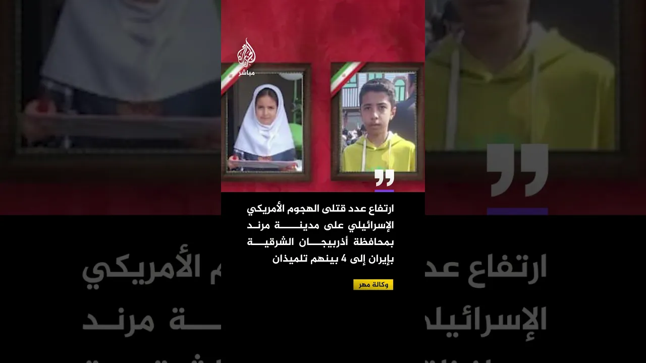 ارتفاع حصيلة قتلى الهجوم الأمريكي الإسرائيلي على مدينة مرند شمال غربي إيران إلى 4 بينهم تلميذان، وفق وكالة مهر