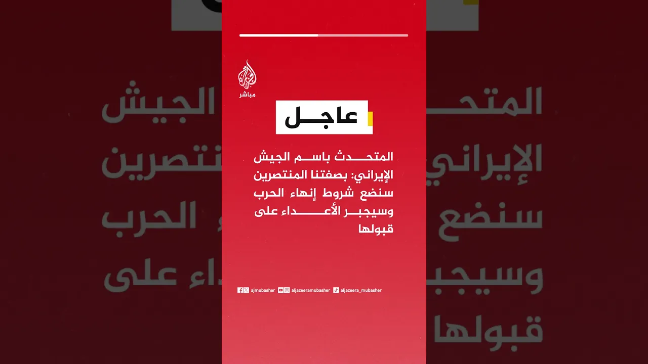 عاجل | المتحدث باسم الجيش الإيراني: بصفتنا المنتصرين سنضع شروط إنهاء الحرب وسيجبر الأعداء على قبولها