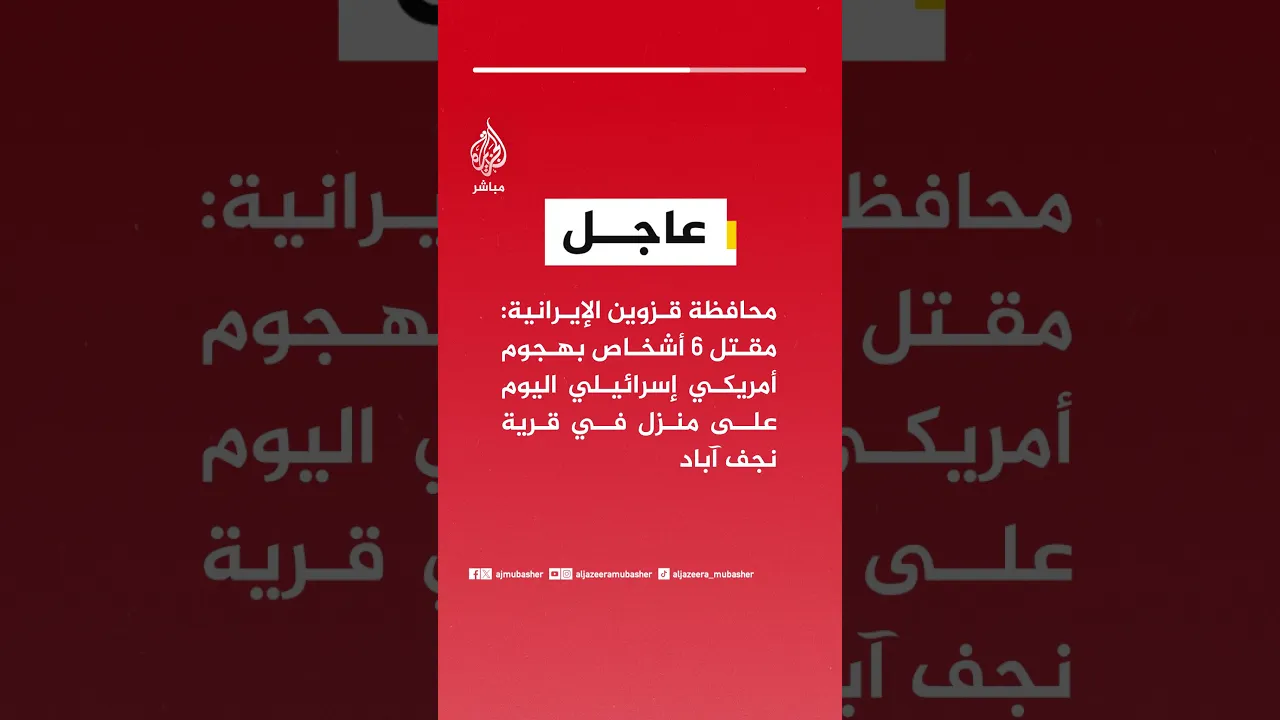 عاجل | محافظة قزوين الإيرانية: مقتل 6 أشخاص بهجوم أمريكي إسرائيلي اليوم على منزل في قرية نجف آباد