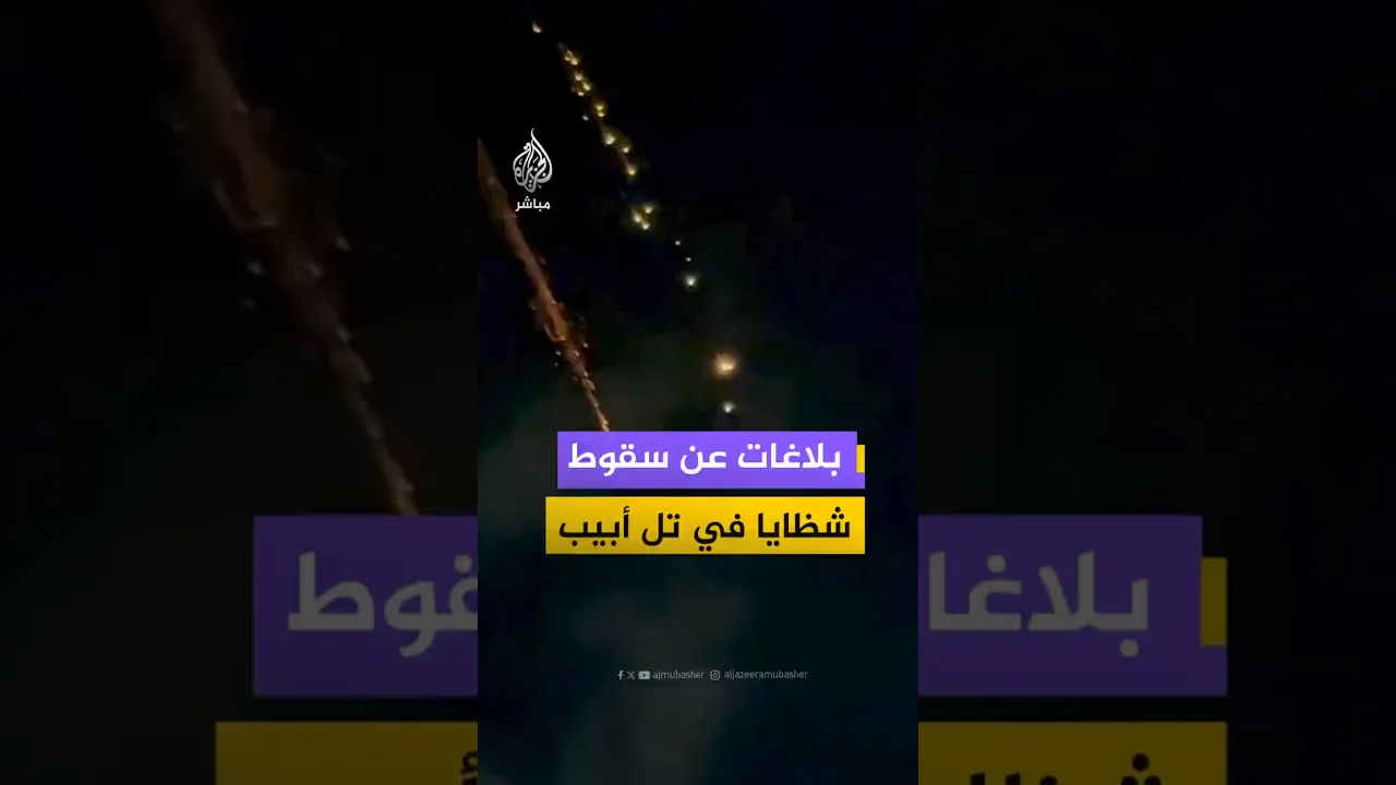 • بلاغات أولية عن سقوط شظايا في 4 مواقع في تل أبيب الكبرى وموقعين في النقب