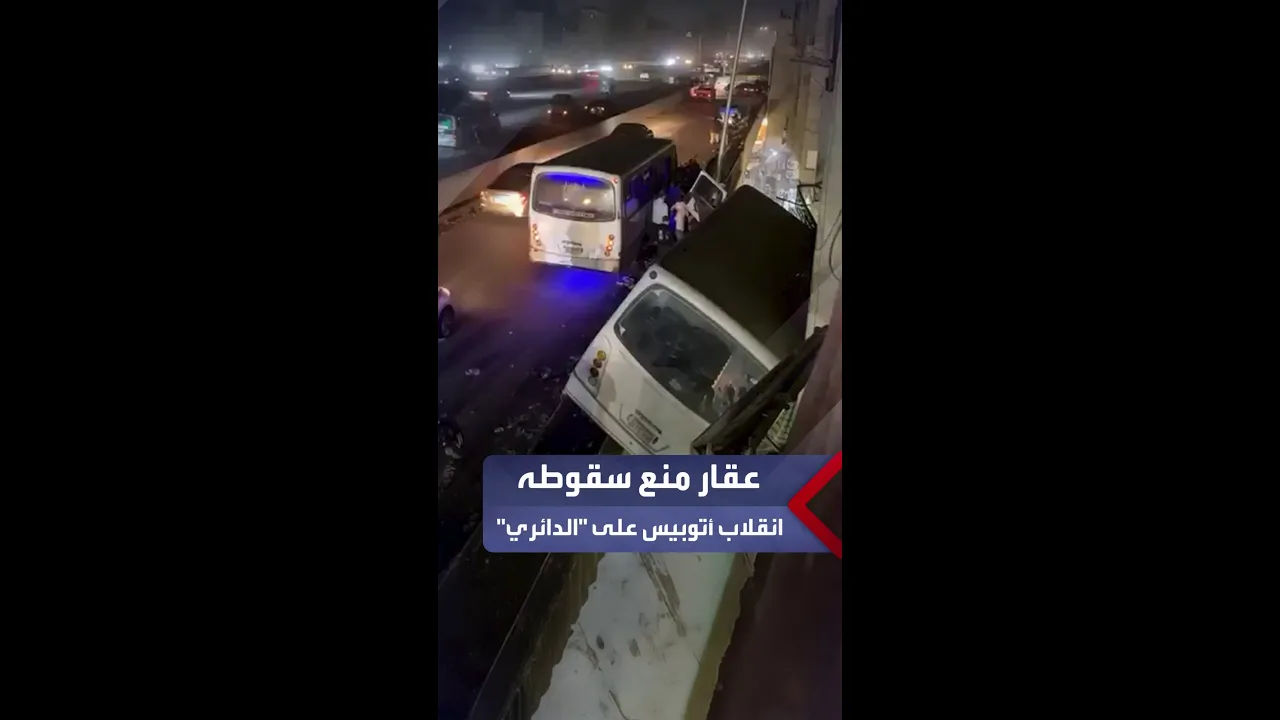 معلق في الهواء بين الكوبري وعقار.. انقلاب أتوبيس أعلى الطريق الدائري في الجيزة