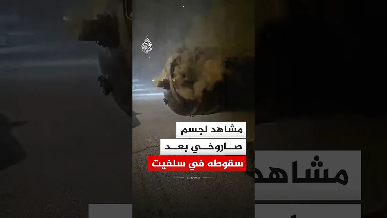مشاهد تظهر جسما صاروخيا بعد سقوطه على الأرض في مدينة سلفيت شمالي الضفة الغربية