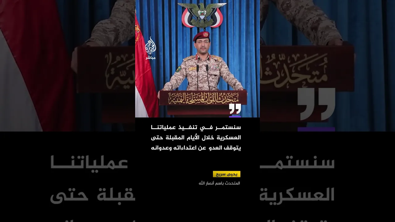 جماعة أنصار الله: سنستمر في تنفيذ عملياتنا العسكرية خلال الأيام المقبلة حتى يتوقف العدو عن اعتداءاته