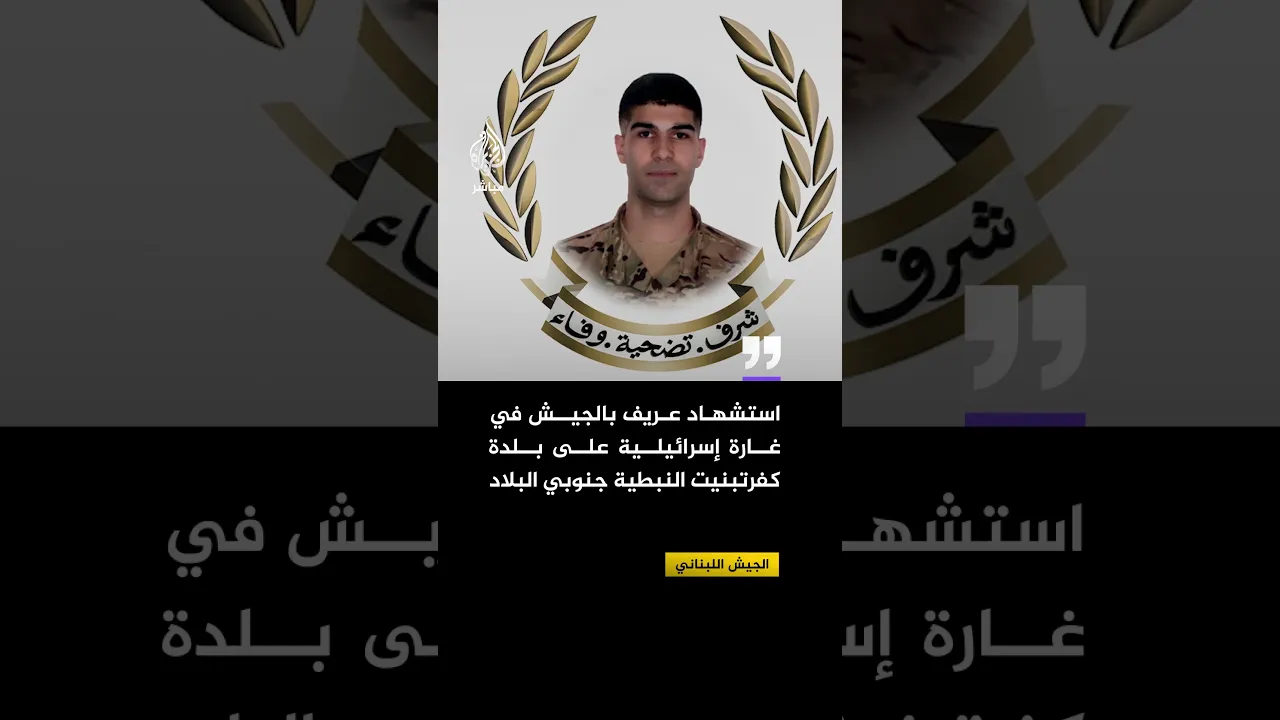 الجيش اللبناني: استشهاد عريف بالجيش في غارة إسرائيلية على بلدة كفرتبنيت النبطية جنوبي البلاد
