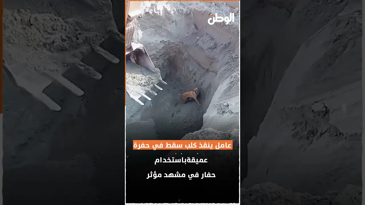 عامل ينقذ كلب سقط في حفرة عميقة باستخدام حفار في مشهد مؤثر