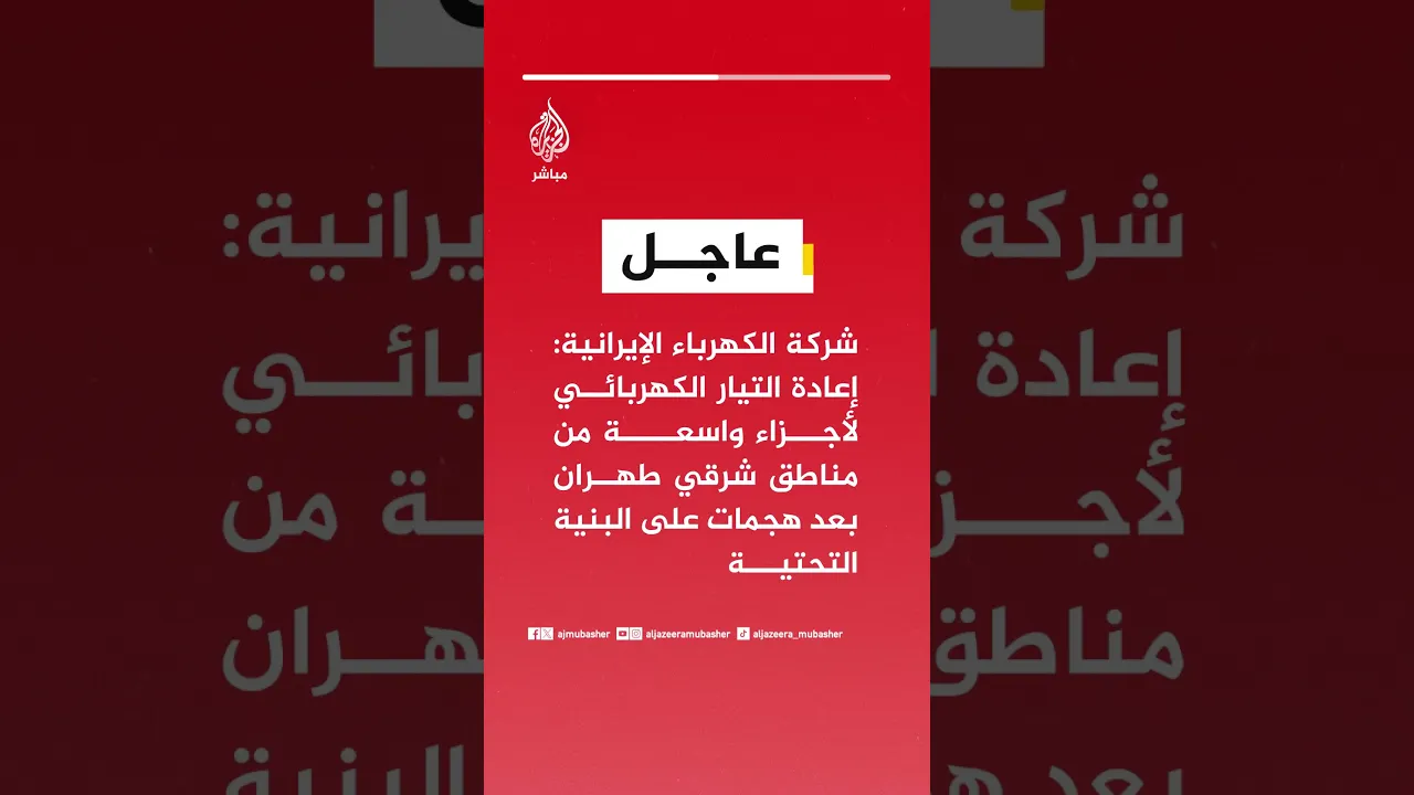 عاجل | شركة الكهرباء الإيرانية: إعادة التيار الكهربائي لأجزاء واسعة من مناطق شرقي طهران بعد هجمات على البنية التحتية