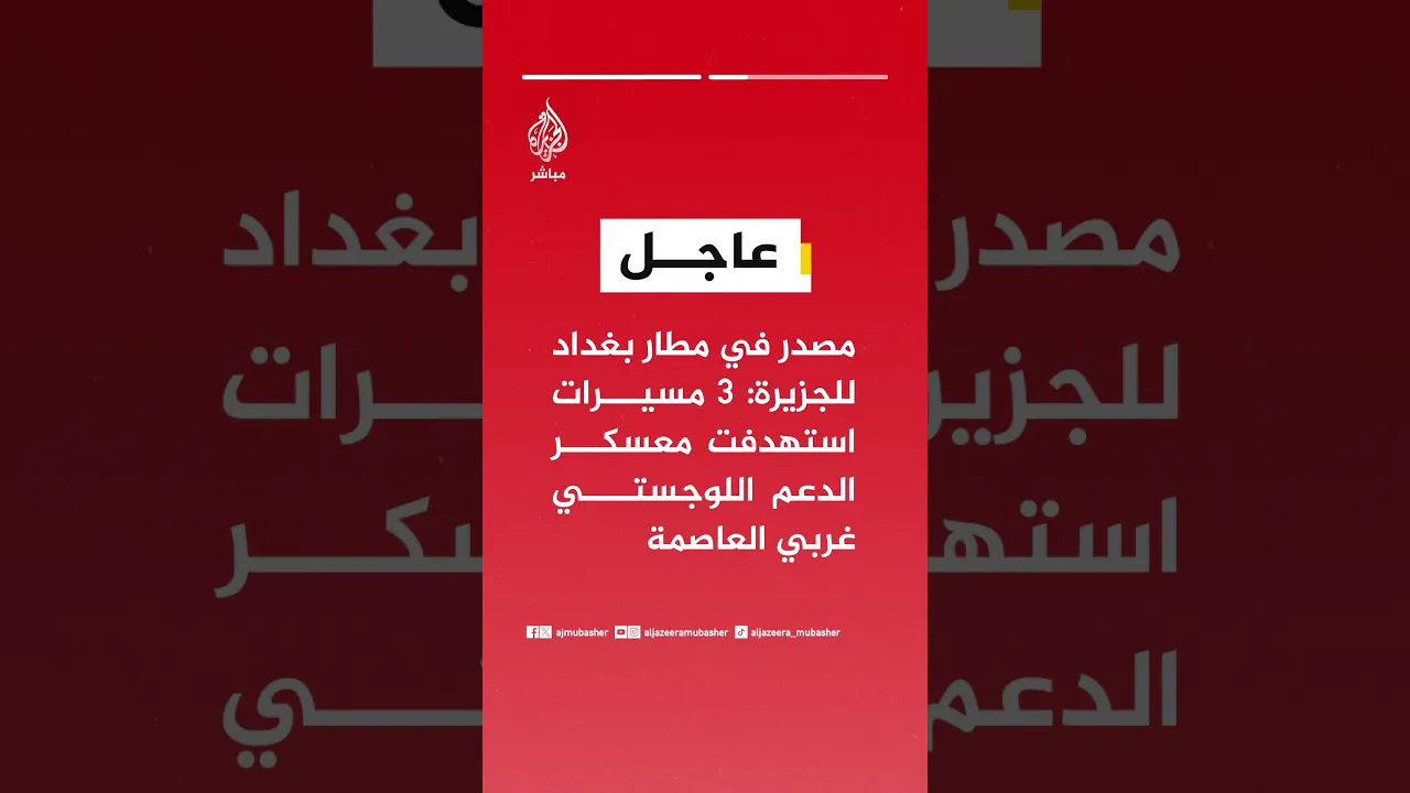 عاجل | مصدر في مطار بغداد للجزيرة: 3 مسيرات استهدفت معسكر الدعم اللوجستي غربي العاصمة