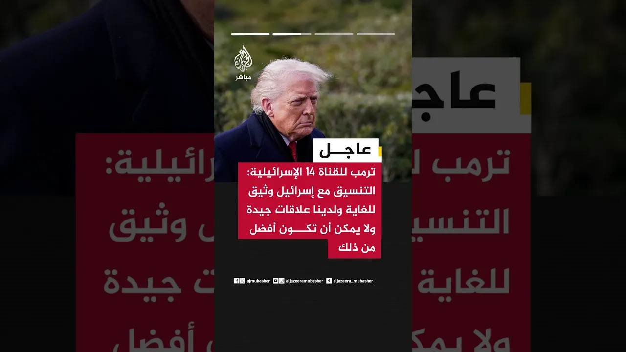 ترمب للقناة 14 الإسرائيلية: التنسيق مع إسرائيل وثيق للغاية ولدينا علاقات جيدة ولا يمكن أن تكون أفضل من ذلك
