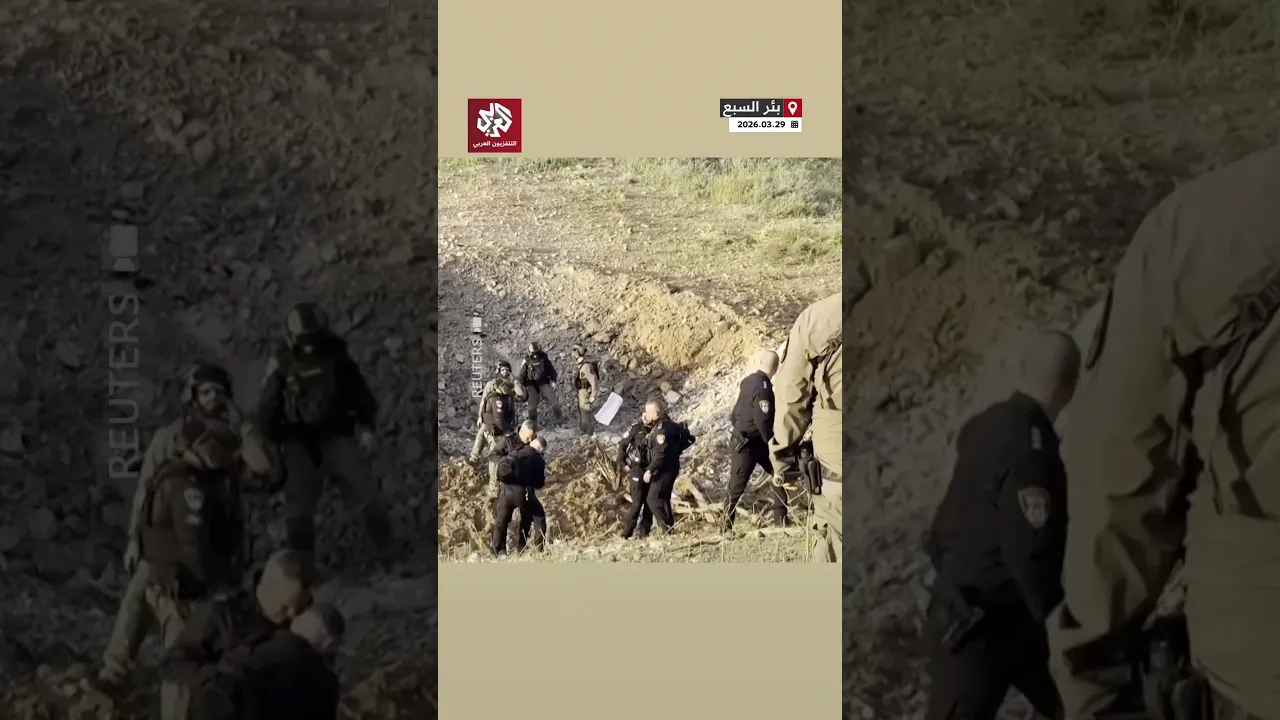 أحدث حفرة عميقة.. مشاهد تظهر انتشار الأمن الإسرائيلي في موقع سقوط صاروخ إيراني ببئر السبع