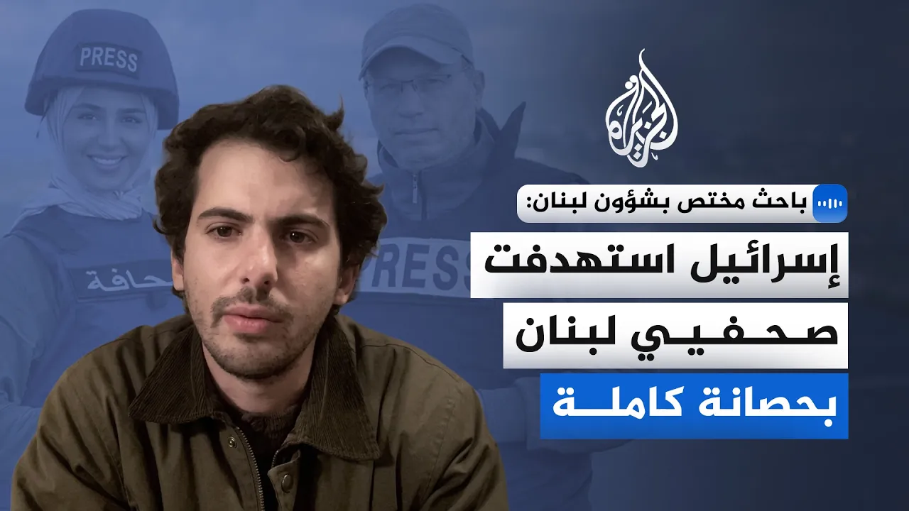 "إسرائيل استهدفت صحفيي لبنان بحصانة كاملة".. قال الباحث المختص بشؤون لبنان في منظمة هيومن رايتس ووتش، رمزي قيس، في مقابلة مع الجزيرة، إن مقتل الصحفي علي شعيب يمثل استمرارا لنهج الهجمات المتعمدة التي توثقها المنظمة كجرائم حرب واضحة في لبنان.
