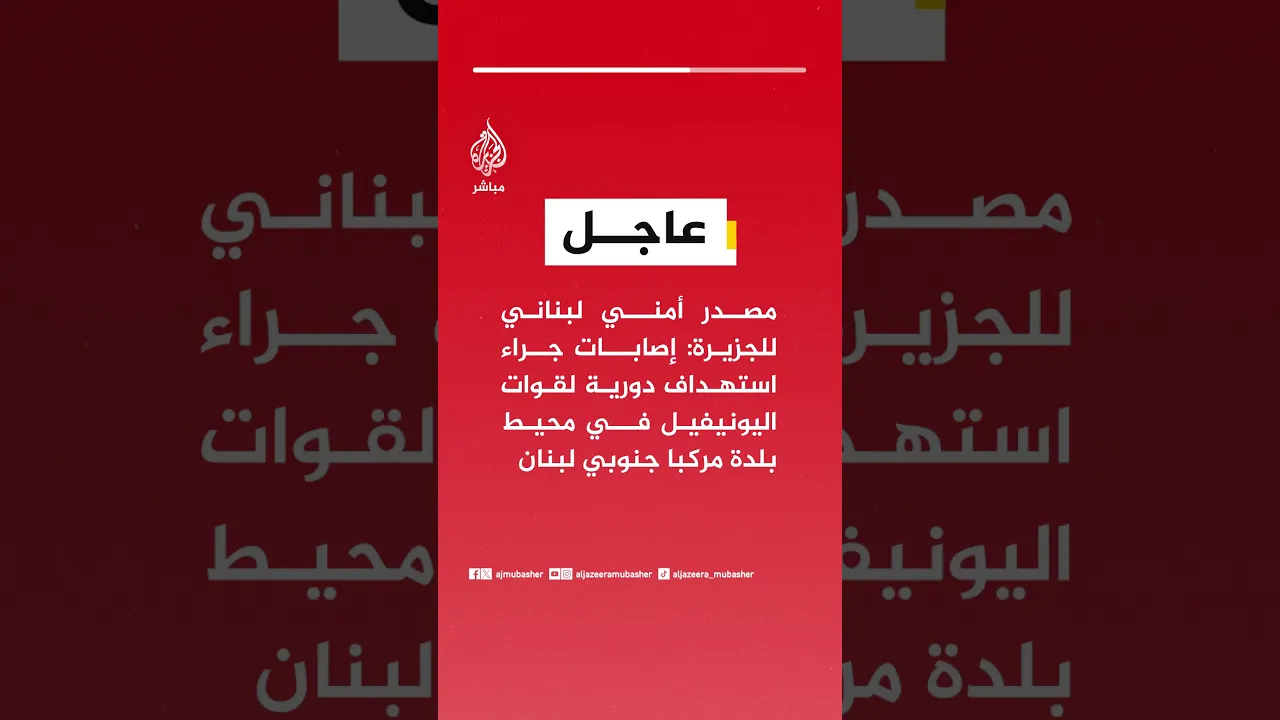 عاجل | مصدر أمني لبناني للجزيرة: إصابات جراء استهداف دورية لقوات اليونيفيل في محيط بلدة مركبا جنوبي لبنان