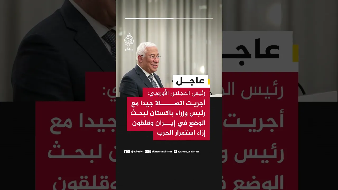 عاجل | رئيس المجلس الأوروبي: أجريت اتصالا جيدا مع رئيس وزراء باكستان لبحث الوضع في إيران وقلقون إزاء استمرار الحرب