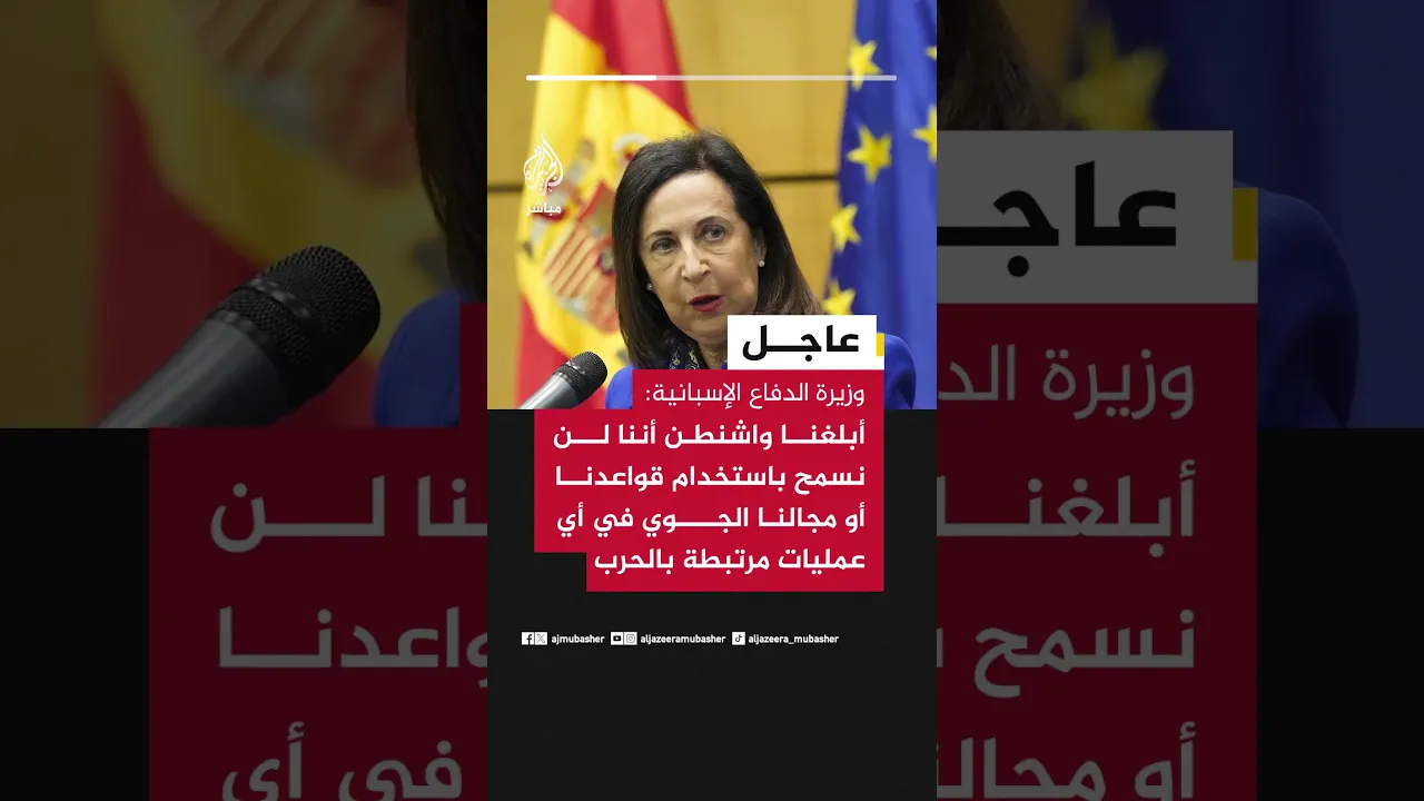 عاجل | وزيرة الدفاع الإسبانية: أبلغنا واشنطن أننا لن نسمح باستخدام قواعدنا أو مجالنا الجوي في أي عمليات مرتبطة بالحرب