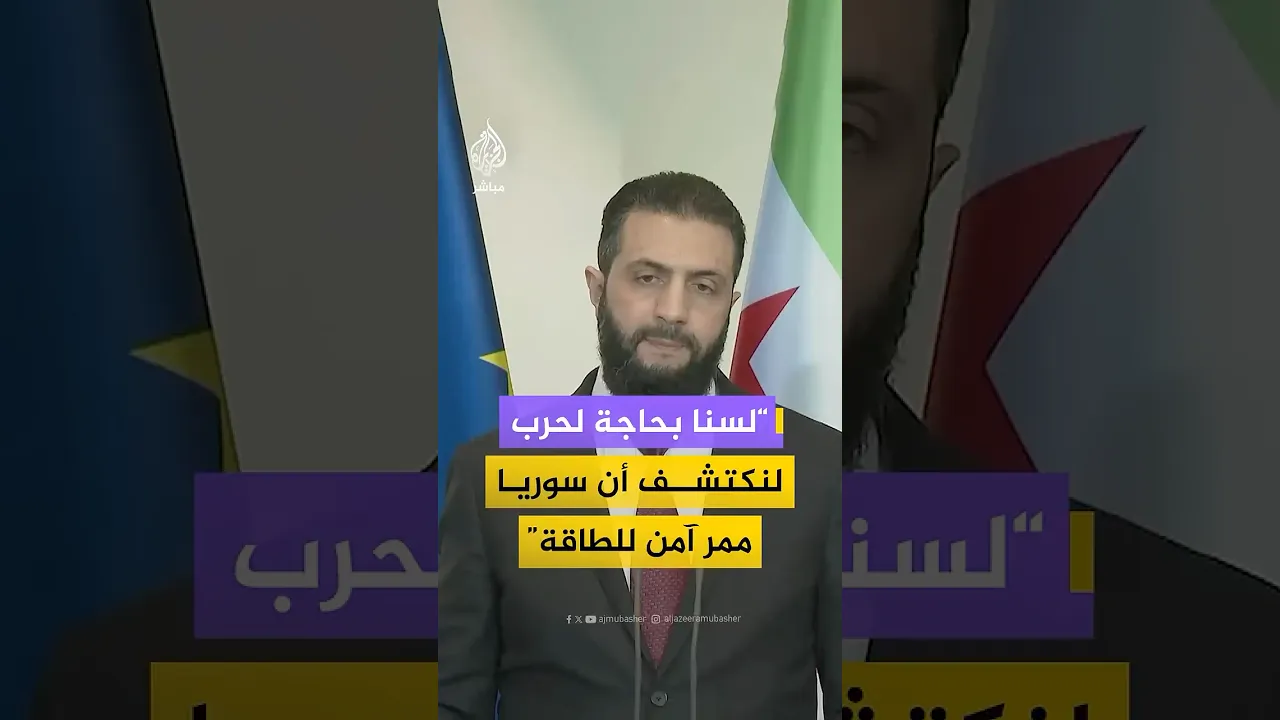 الرئيس السوري أحمد الشرع: منخرطون مع دول المنطقة للوصول إلى حل آمن لمشكلة إمدادات الطاقة، ولسنا بحاجة إلى حرب لنكتشف أن سوريا ممر بري آمن لسلاسل التوريد