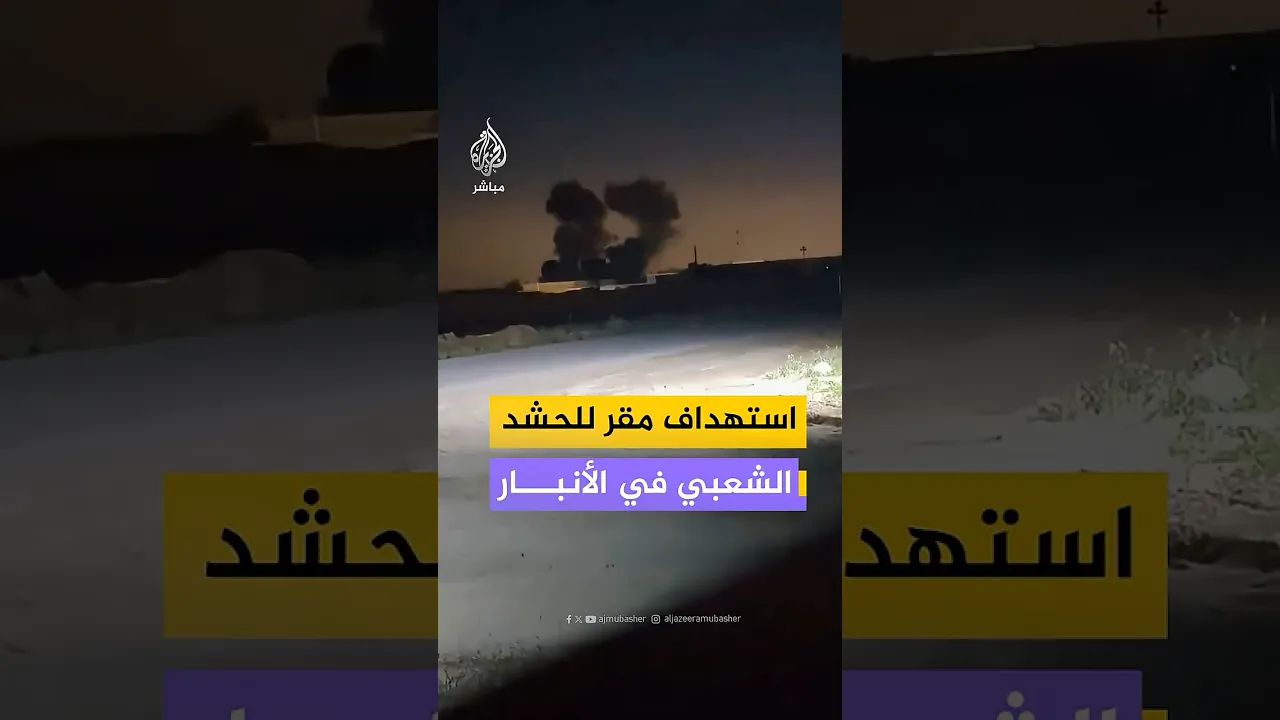 مشاهد توثق تصاعد أعمدة الدخان في مدينة الأنبار بالعراق عقب استهداف مقر الحشد الشعبي