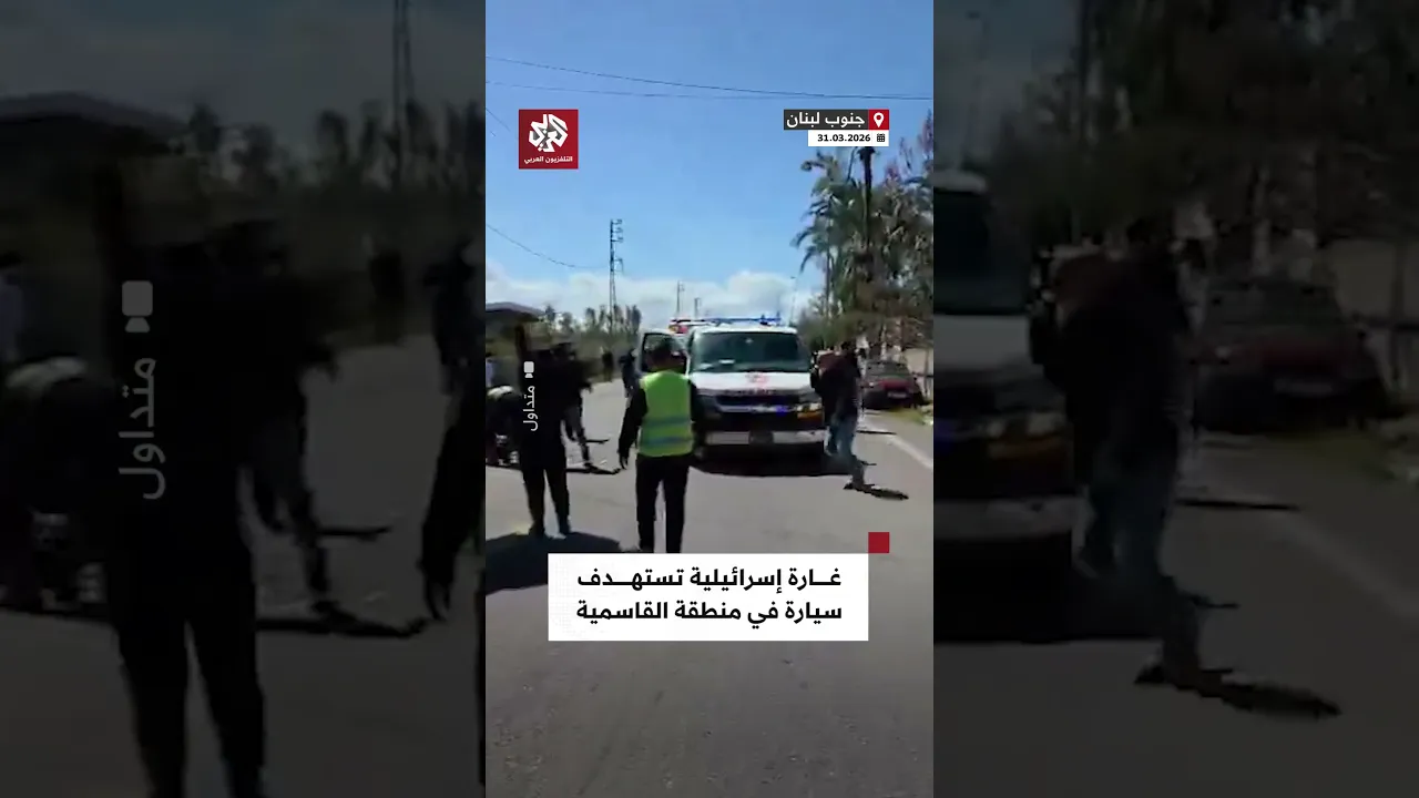 اللحظات الأولى عقب غارة إسرائيلية استهدفت سيارة في منطقة القاسمية جنوب لبنان