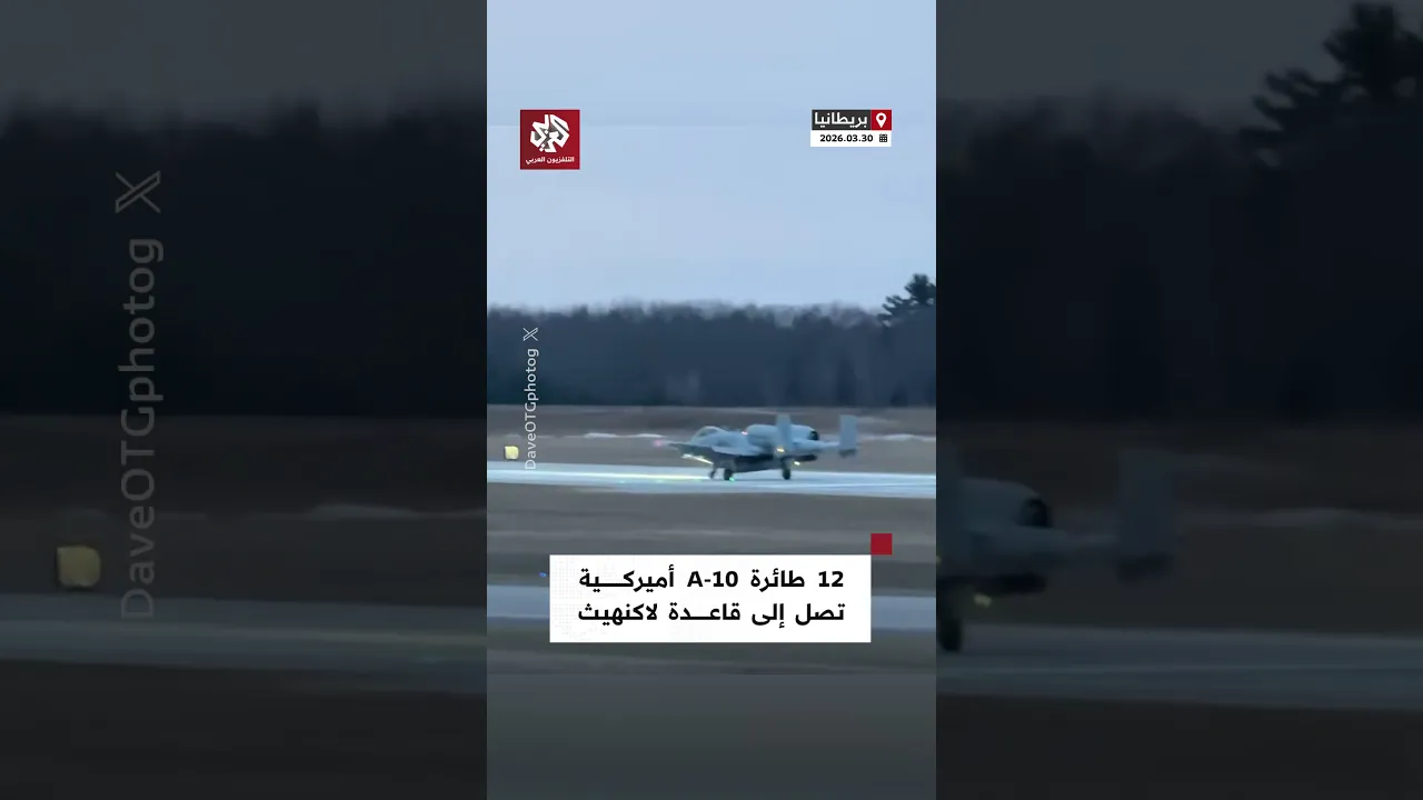 وثّقت مقاطع فيديو وصول 12 طائرة هجوم أمريكية من طراز A-10C "ثاندربولت II"، التابعة للسرب المقاتل 107 ضمن الجناح 127 من الحرس الوطني الجوي لولاية ميشيغان، إلى قاعدة لاكنهيث الجوية في المملكة المتحدة، وتأتي هذه التحركات في سياق الحشد العسكري الأمريكي المتصاعد نحو المنطقة