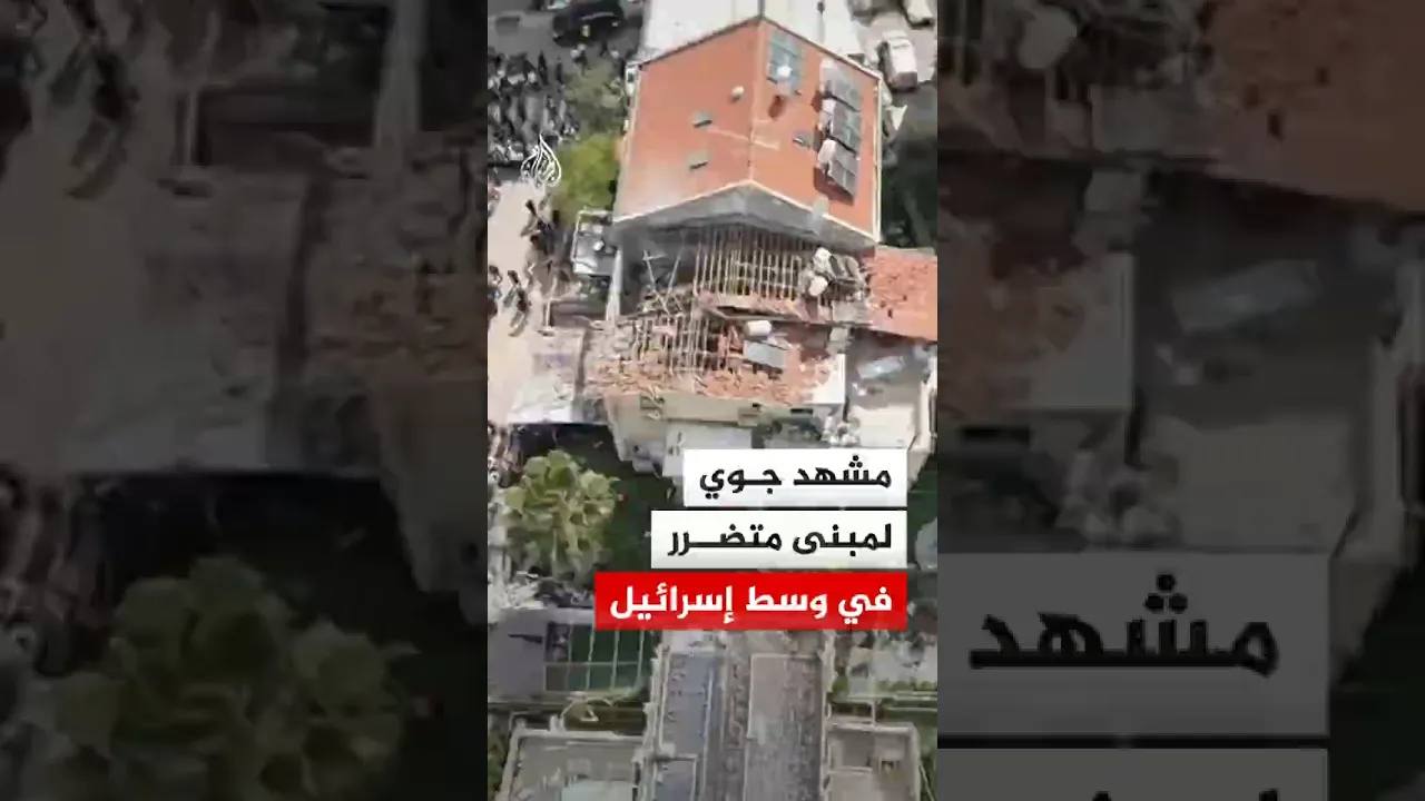 مشهد جوي لمبنى متضرر في وسط إسرائيل جراء سقوط مقذوف
