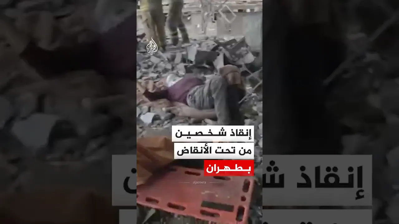 مشاهد توثق عملية إنقاذ شخصين من تحت الأنقاض عقب هجمات جوية على العاصمة الإيرانية طهران