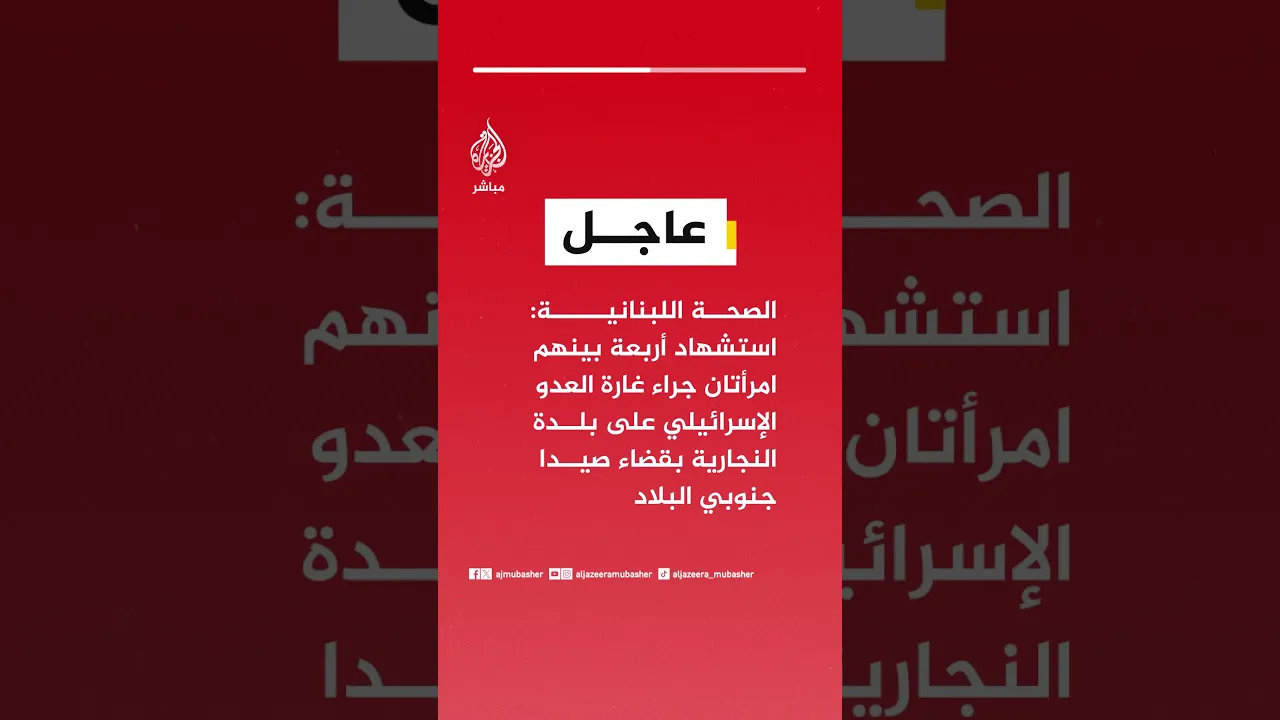 عاجل | الصحة اللبنانية: استـ ـشـهـاد أربعة بينهم امرأتان جراء غارة العدو الإسرائيلي على بلدة النجارية بقضاء صيدا جنوبي البلاد