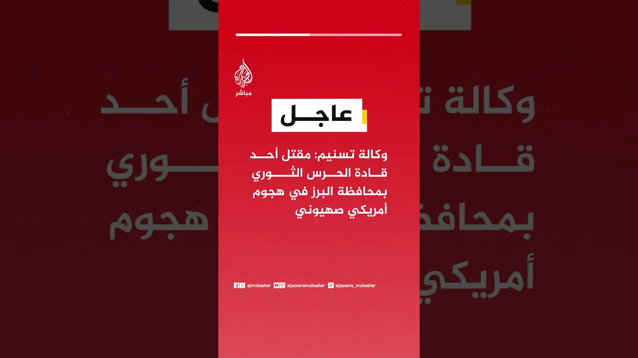 عاجل | وكالة تسنيم: مقتل أحد قادة الحرس الثوري بمحافظة البرز في هجوم أمريكي صهيوني