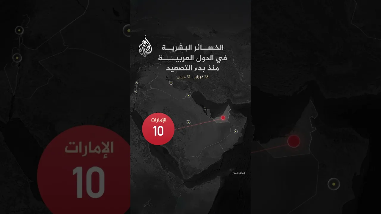 الخسائر البشرية في الدول العربية منذ بدء التصعيد في الشرق الأوسط
