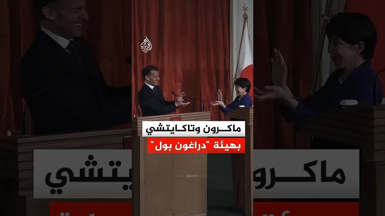 ماكرون وتاكايتشي يتخذان هيئة "دراغون بول" في نهاية مؤتمرهم الصحفي