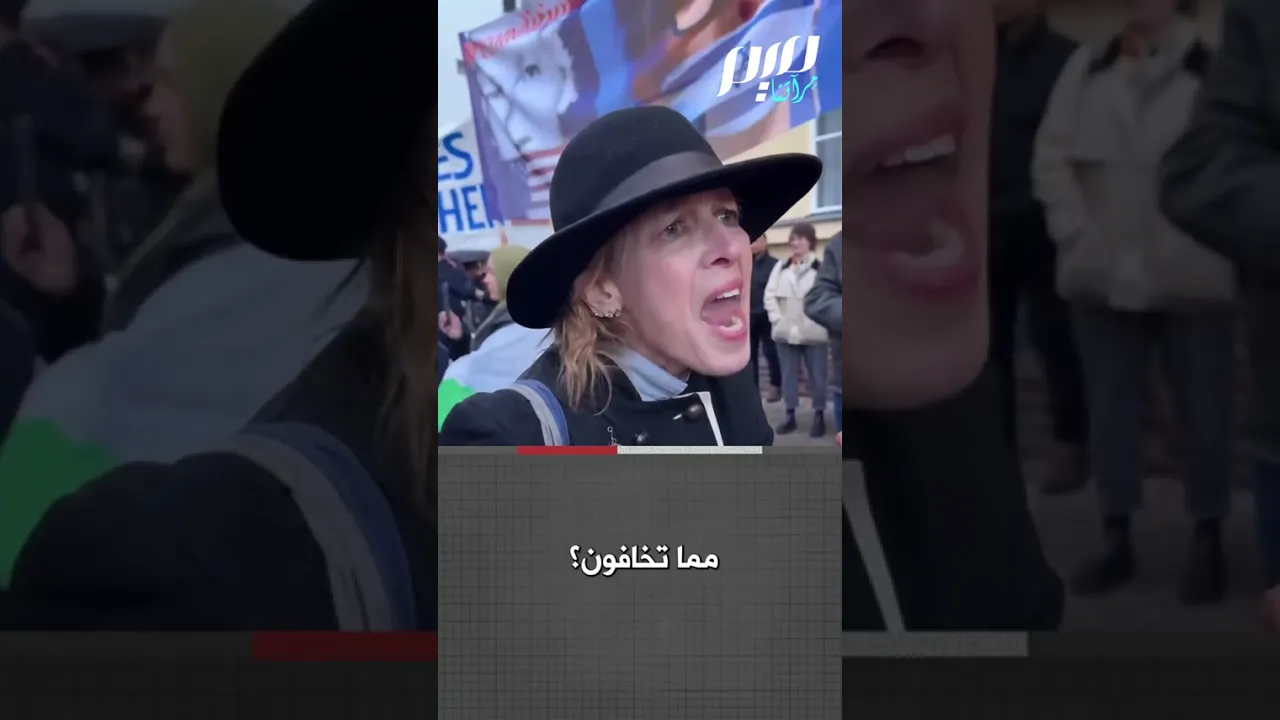 متظاهرة مؤيدة لفلسطين تواجه داعمين لإسرائيل: "هذا هو مدى انحطاطكم! بيدوفيليا، واغتـ ـصـ ـاب، أجل، هذا يفوق الاحتمال!  هل أنتم ضعفاء؟ هل أنتم خائفون؟ مما تخافون؟ مما تخافون؟ أنتم جميعًا خائفون! أنتم تقـ ـتلـ ـون الأطفال!"