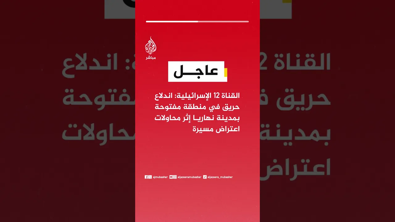 عاجل | القناة 12 الإسرائيلية: اندلاع حريق في منطقة مفتوحة بمدينة نهاريا إثر محاولات اعتراض مسيرة