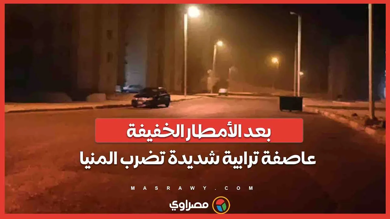 بعد الأمطار الخفيفة.. عاصفة ترابية شديدة تضرب المنيا