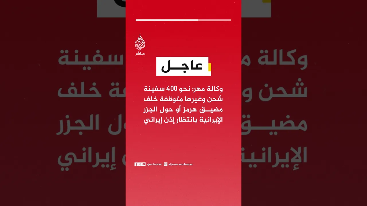 عاجل | وكالة مهر: نحو 400 سفينة شحن وغيرها متوقفة خلف مضيق هرمز أو حول الجزر الإيرانية بانتظار إذن إيراني