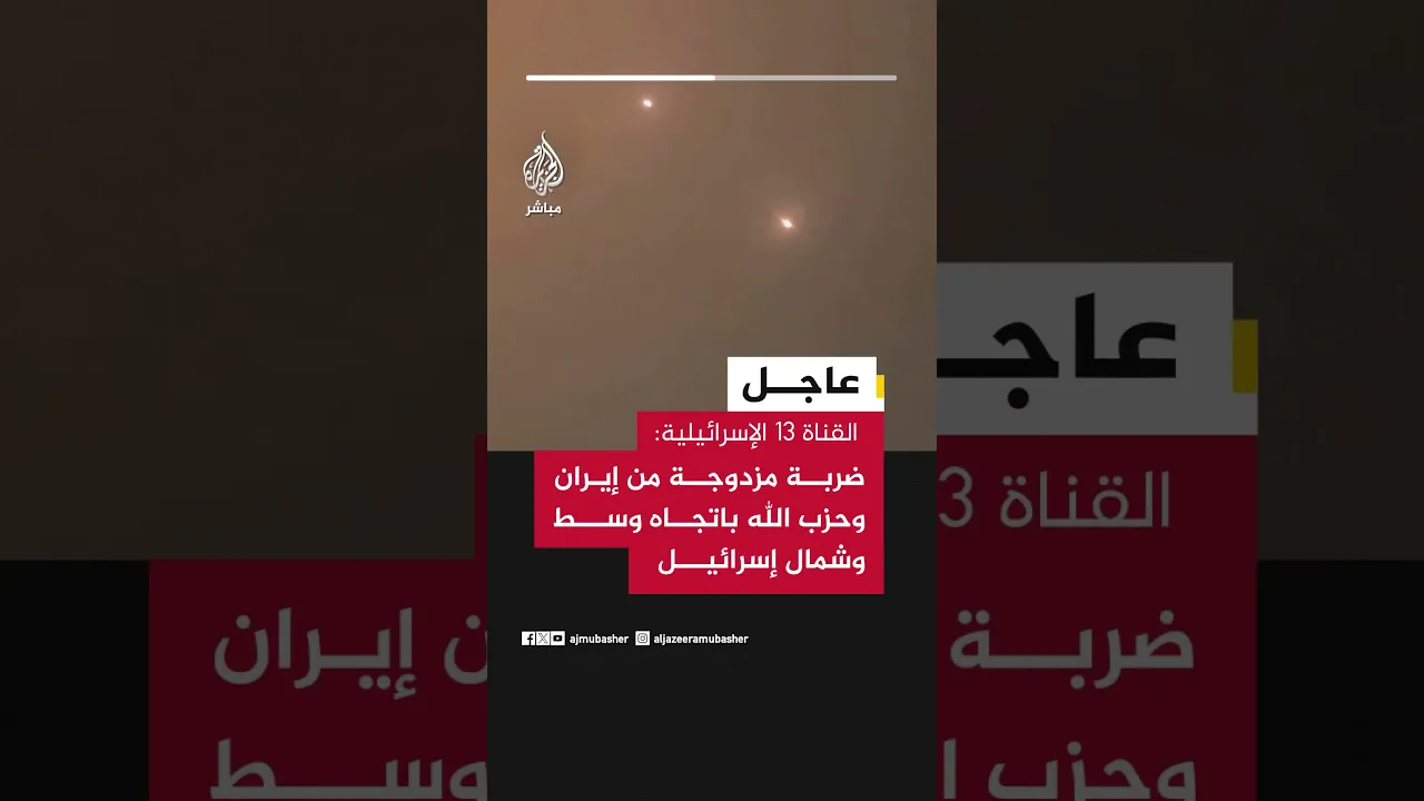 عاجل | القناة 13 الإسرائيلية: ضربة مزدوجة من #إيران وحزب الله باتجاه وسط وشمال إسرائيل