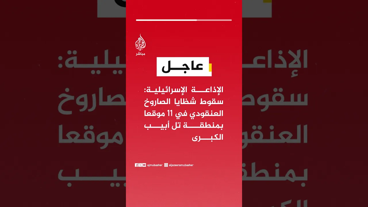 الإذاعة الإسرائيلية: سقوط شظايا الصاروخ العنقودي في 11 موقعا بمنطقة تل أبيب الكبرى
