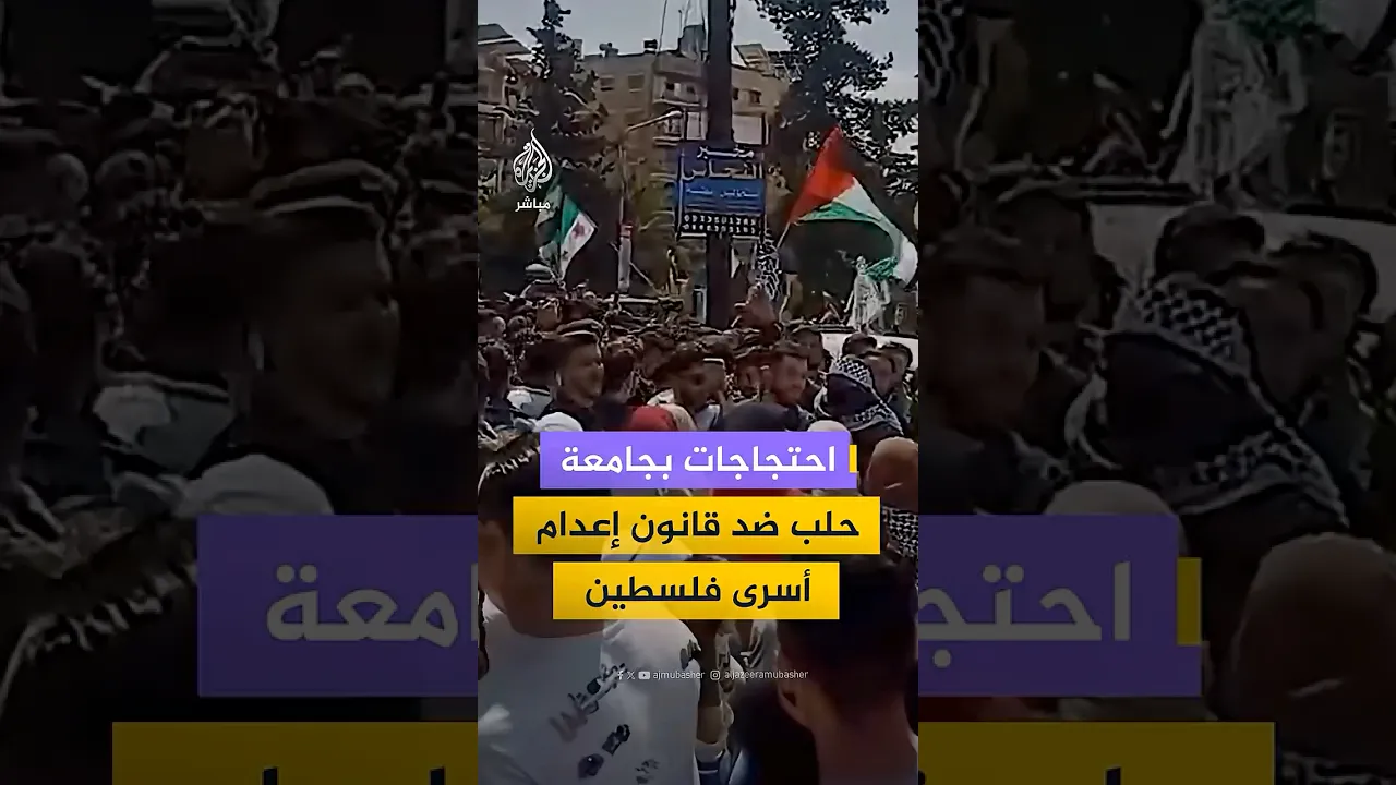 وقفة طلابية في جامعة حلب السورية تنديدا بقانون إعدام الأسرى الفلسطينيين في سجون الاحتلال الإسرائيلي ودعما لقطاع غزة