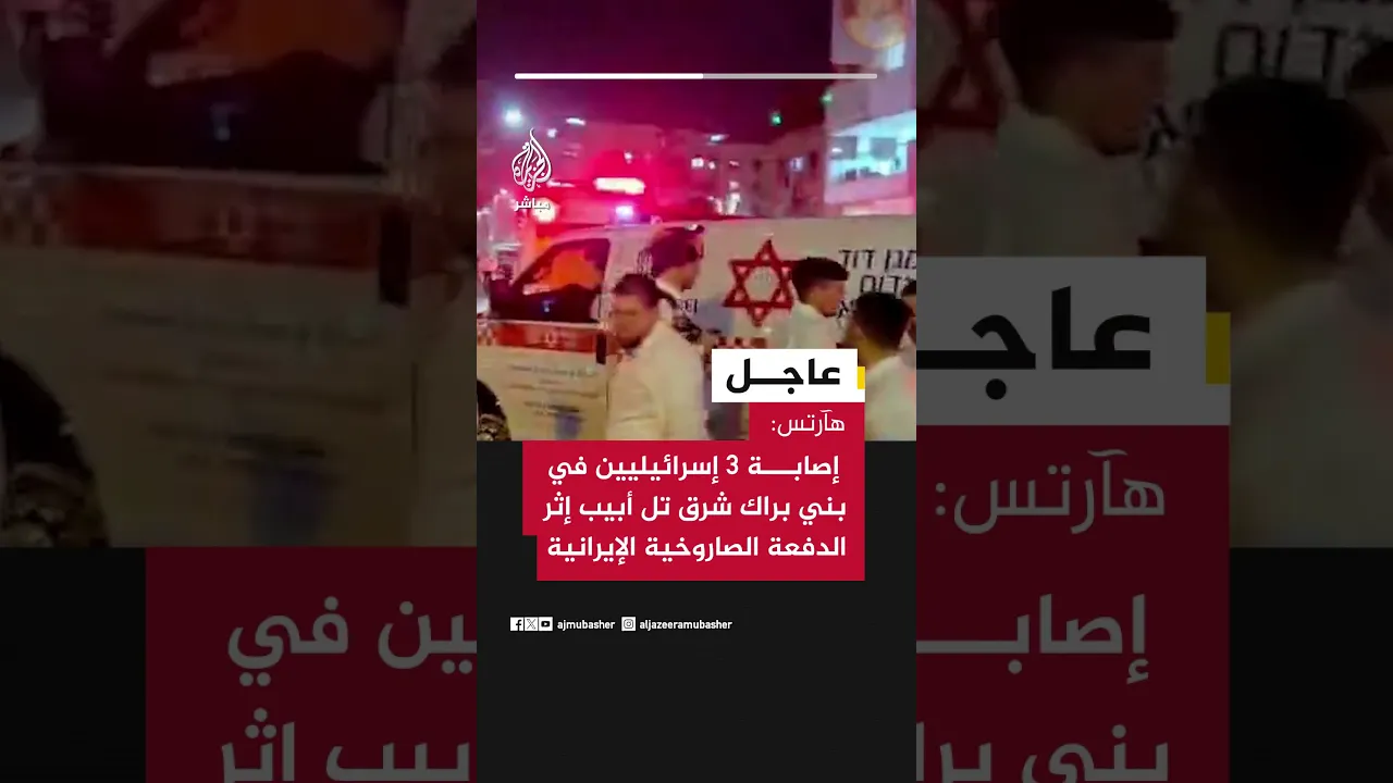 عاجل | هآرتس: إصابة 3 إسرائيليين في بني براك شرق تل أبيب إثر الدفعة الصاروخية الإيرانية