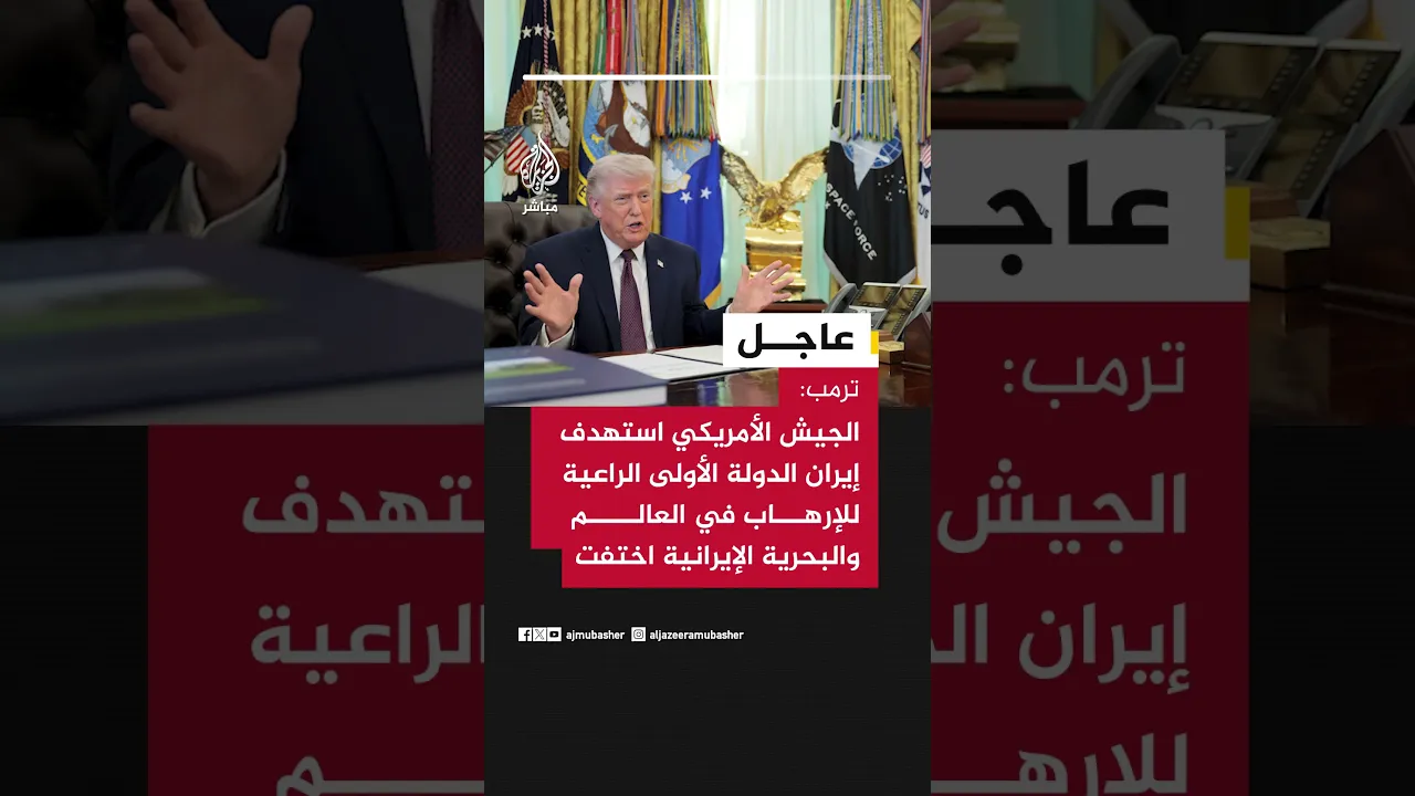 عاجل | #ترمب: الجيش الأمريكي استهدف #إيران الدولة الأولى الراعية للإرهاب في العالم والبحرية الإيرانية اختفت