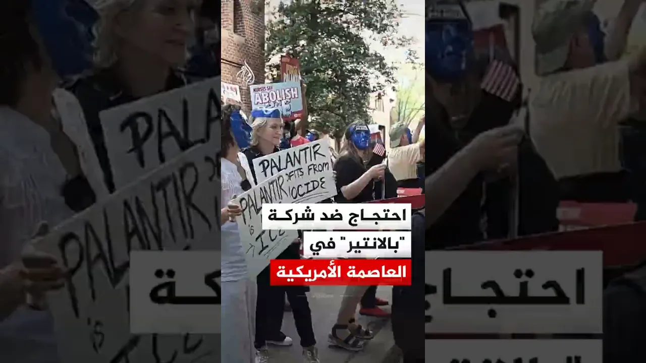 احتجاجات أمام شركة "بلانتير" المختصة بتحليل البيانات في العاصمة واشنطن، والتي يزعم المناهضون لها ارتباطها بوكالة الهجرة والجمارك الأمريكية