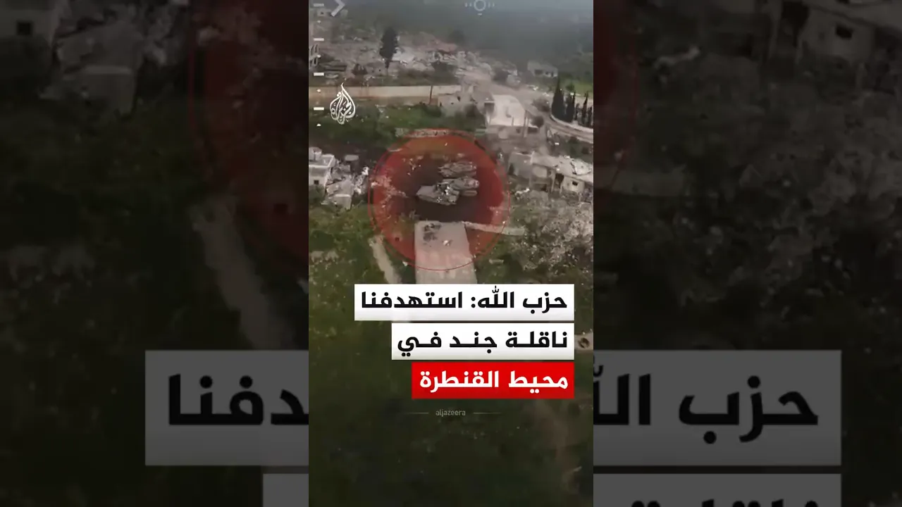 حزب الله ينشر مشاهد الخميس، قال إنها لاستهدافه ناقلة جند مدرعة إسرائيلية في محيط بلدة القنطرة جنوبي لبنان