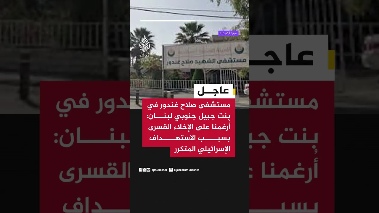 عاجل | مستشفى صلاح غندور في بنت جبيل جنوبي لبنان: أرغمنا على الإخلاء القسرى بسبب الاستهداف الإسرائيلي المتكرر