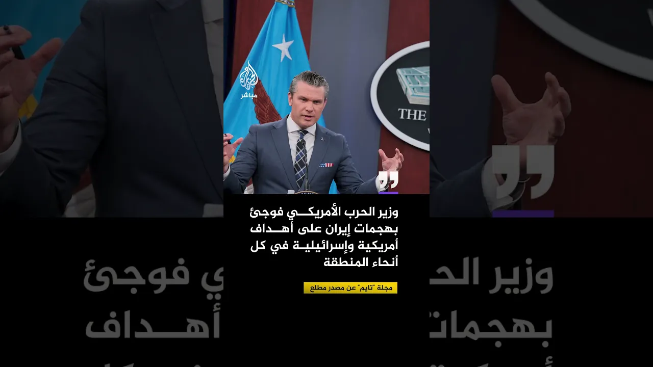 مجلة "تايم": وزير الحرب الأمريكي فوجئ بهجمات #إيران على أهداف أمريكية وإسرائيلية في كل أنحاء المنطقة