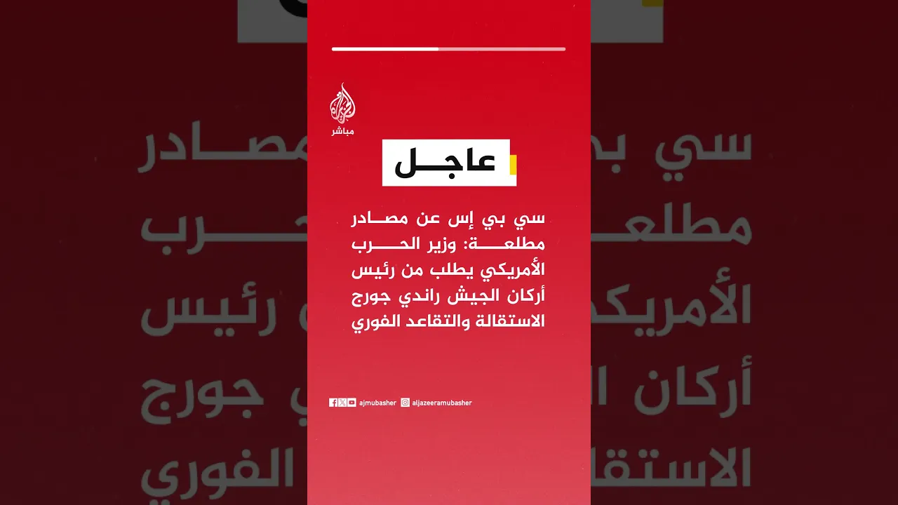 عاجل | سي بي إس عن مصادر مطلعة: وزير الحرب الأمريكي يطلب من رئيس أركان الجيش راندي جورج الاستقالة والتقاعد الفوري
