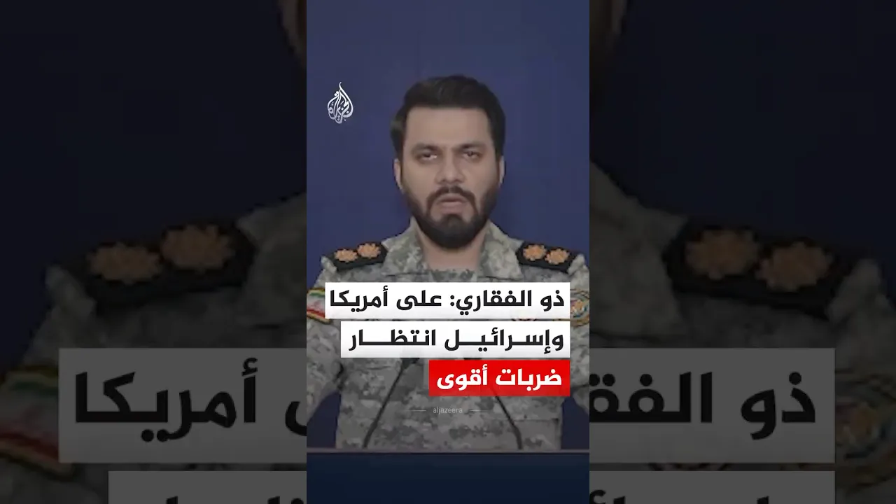 المتحدث باسم مقر خاتم الأنبياء التابع للحرس الثوري إبراهيم ذو الفقاري يقول إن على أمريكا وإسرائيل انتظار ضربات أشد وأقوى