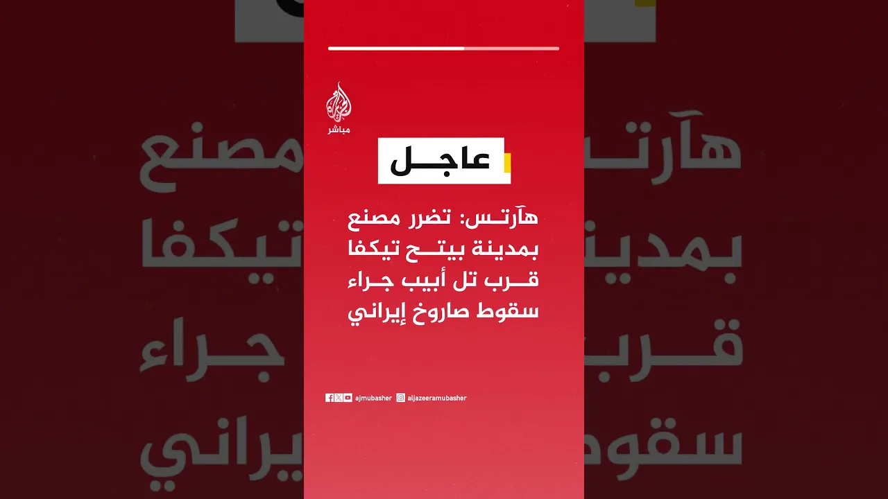 عاجل | هآرتس: تضرر مصنع بمدينة بيتح تيكفا قرب تل أبيب جراء سقوط صاروخ إيراني