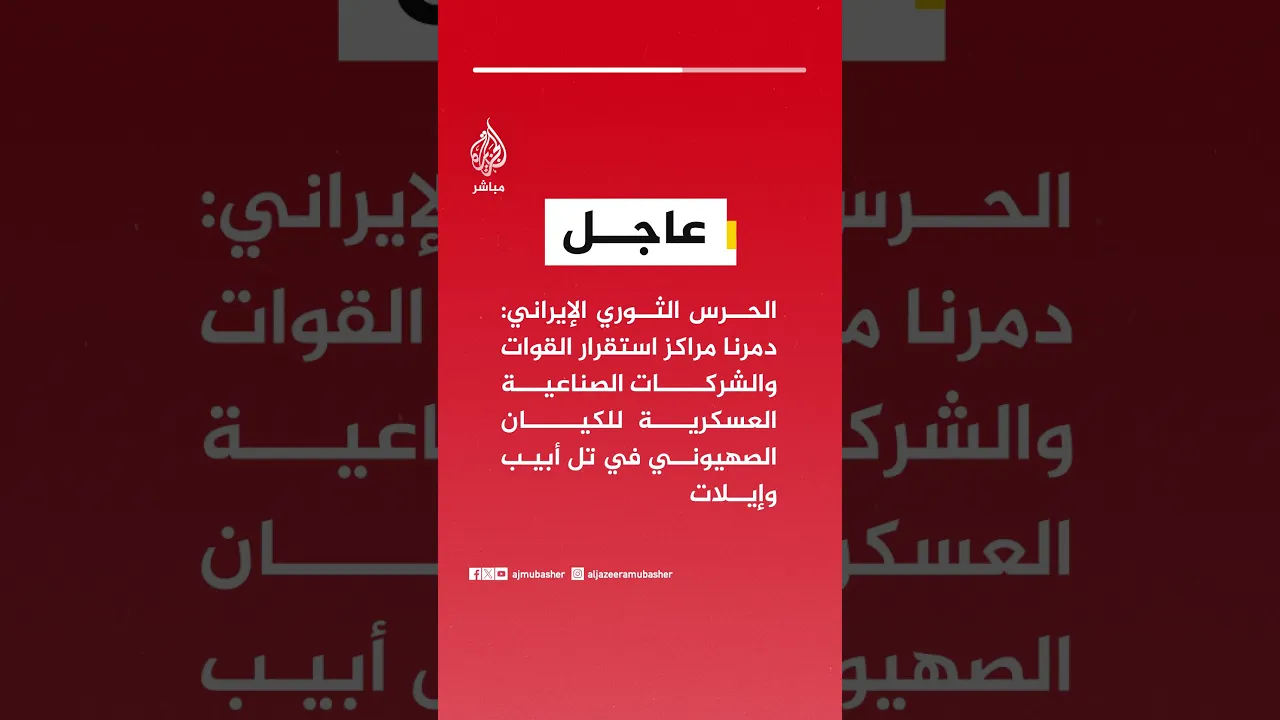 عاجل | الحرس الثوري الإيراني: دمرنا مراكز استقرار القوات والشركات الصناعية العسكرية للكيان الصهيوني في تل أبيب وإيلات