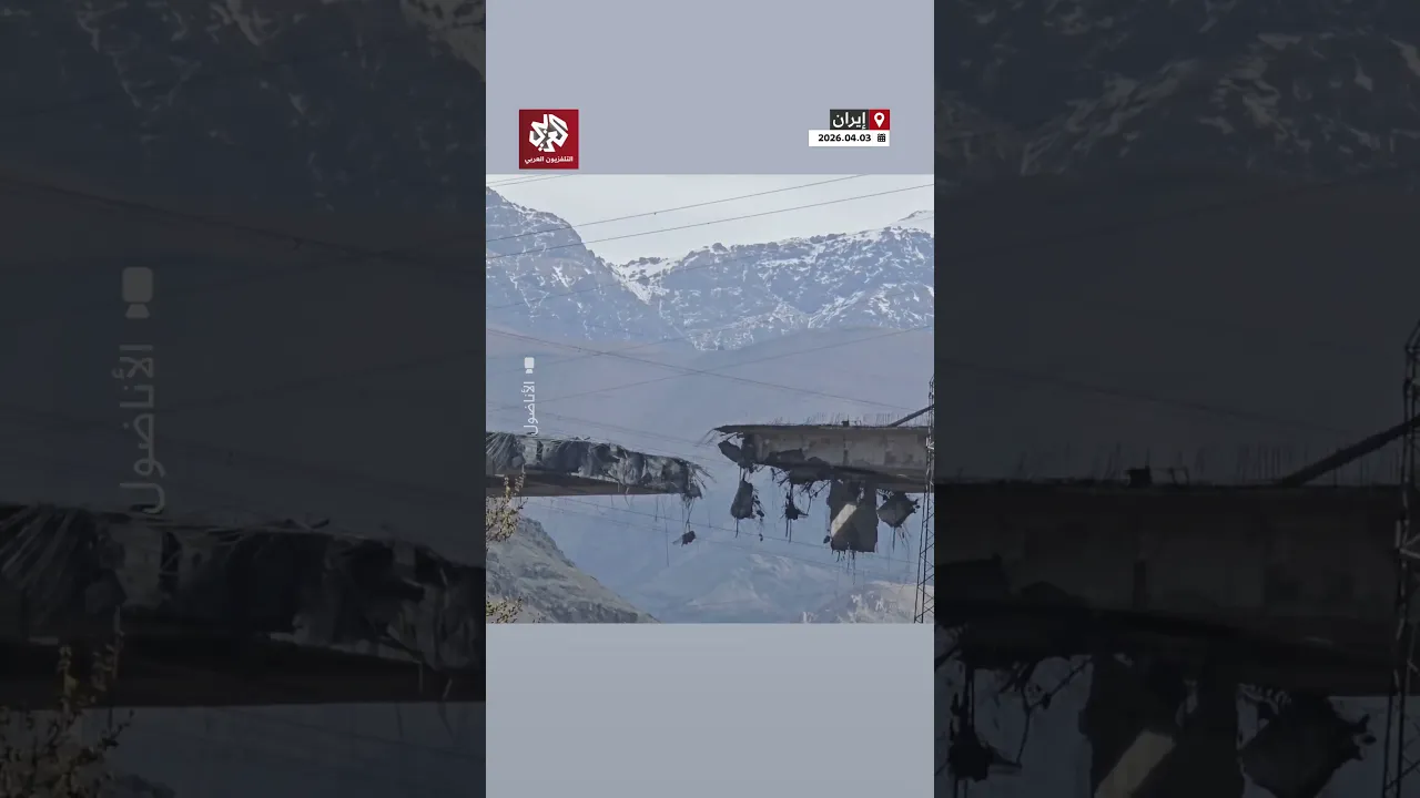 مشاهد توثق الدمار الذي لحق بجسر B1 الذي يربط مدينة كرج بالعاصمة طهران إثر غارات أميركية وإسرائيلية