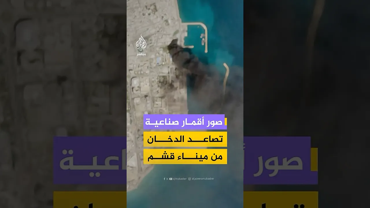 صور بالأقمار الصناعية التابعة للاتحاد الأوروبي تظهر تصاعد أعمدة الدخان من ميناء تجاري في جزيرة قشم الإيرانية بعد هجمات أمريكية إسرائيلية
