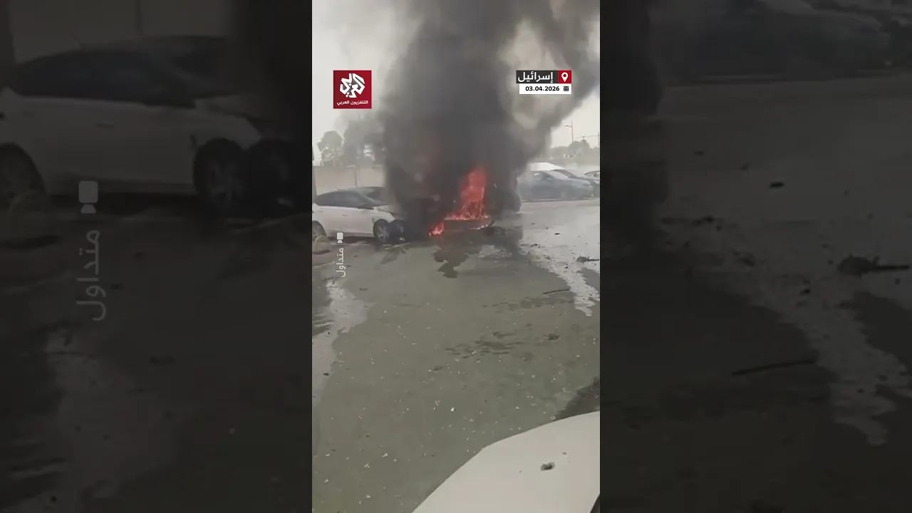 مشاهد تظهر احتراق سيارات في "كريات آتا" نتيجة قصف صاروخي إيراني