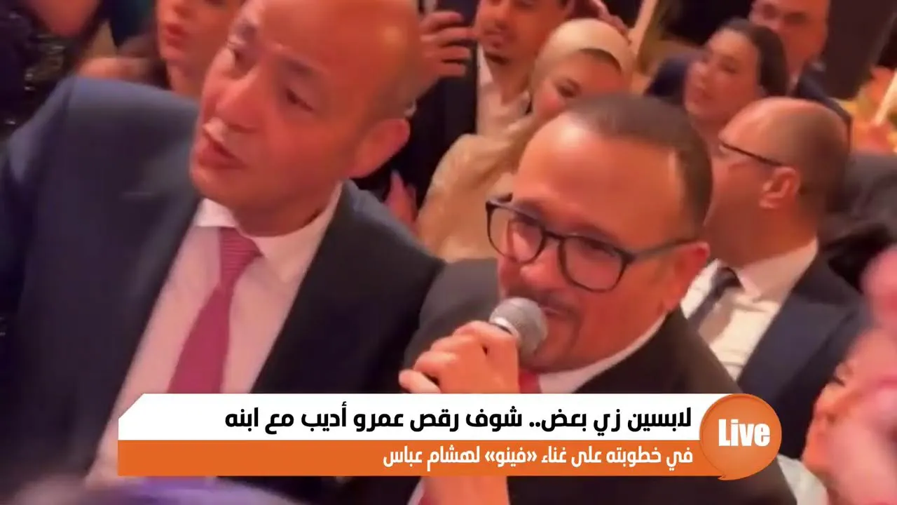 لابسين زي بعض.. شوف رقص عمرو أديب مع ابنه في خطوبته على غناء «فينو» لهشام عباس
