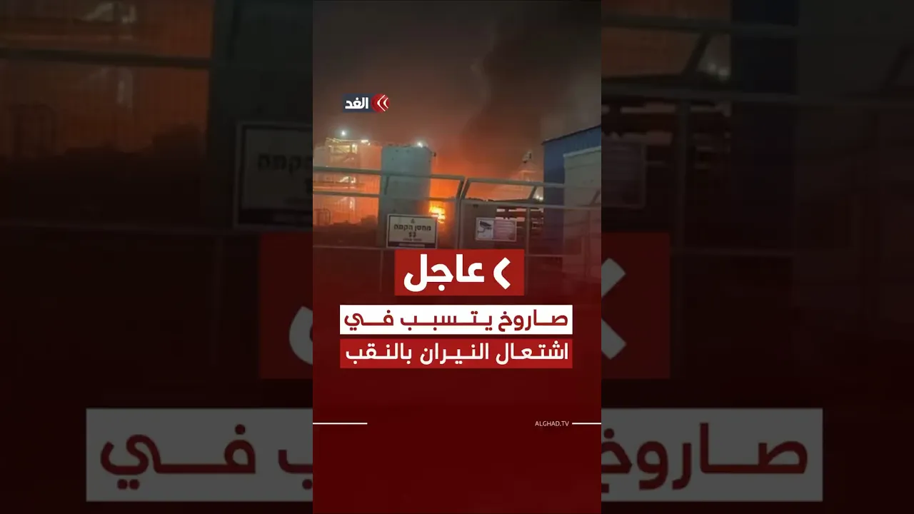 مشاهد توثق اشتعال النيران جراء سقوط صاروخ إيراني في منطقة صناعية داخل النقب جنوبي إسرائيل