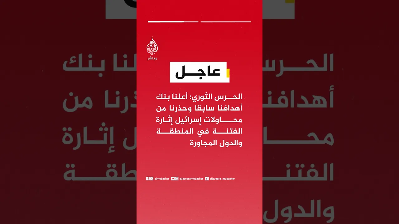 عاجل | الحرس الثوري: أعلنا بنك أهدافنا سابقا وحذرنا من محاولات إسرائيل إثارة الفتنة في المنطقة والدول المجاورة